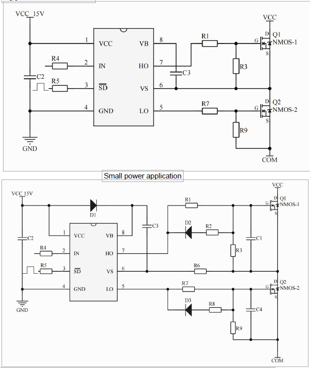 •主要特點(diǎn):集成自舉二極管;為自舉操作而設(shè)計(jì)的浮動(dòng)通道;完全工作到+600V;容忍負(fù)瞬態(tài)電壓v /dt免疫;柵極驅(qū)動(dòng)供電范圍從4.8到20v;欠壓鎖定;3.3V, 5V和15V輸入邏輯兼容;交叉?zhèn)鲗?dǎo)防止邏輯;內(nèi)部設(shè)置死區(qū)時(shí)間;高側(cè)輸出與輸入相一致