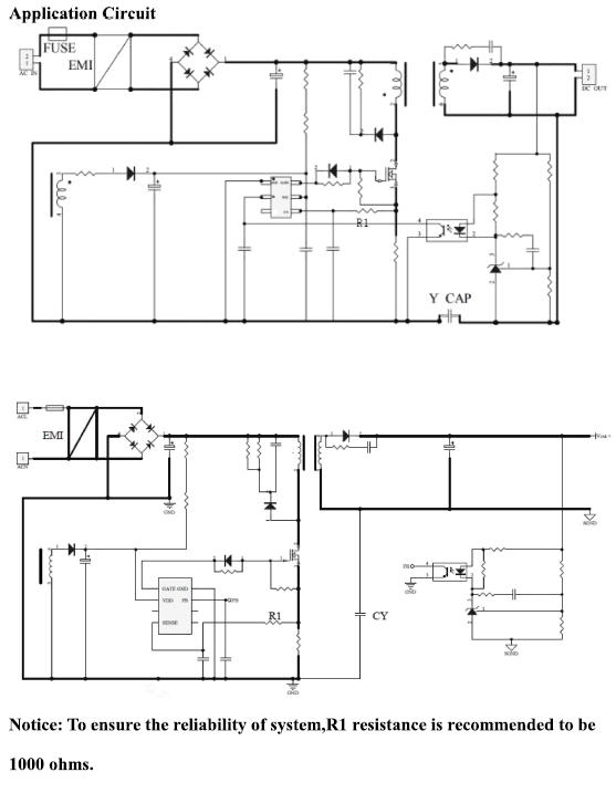 •主要特點(diǎn):數(shù)字頻率變換技術(shù),提高EMI性能。電流感測輸入的前緣消隱。斜率補(bǔ)償。突發(fā)模式控制,提高效率,優(yōu)化待機(jī)功耗。啟動(dòng)電流小,運(yùn)行電流小。柵極輸出電壓箝位。軟啟動(dòng),以減少M(fèi)OSFET應(yīng)力在上電期間。綜合保護(hù)功能:1、VDD2欠壓鎖滯(UVLO), vdd3過壓保護(hù)(OVP),周期電流限制,4、限流補(bǔ)償,在通用交流線路輸入時(shí)獲得相同的輸出電流,5、過載保護(hù)(OLP), 6、過溫保護(hù)(OTP)。300mA驅(qū)動(dòng)能力。