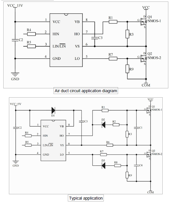 •主要特點:集成自舉二極管;為自舉操作設計的浮動通道;完全工作到+600V;容忍負瞬態(tài)電壓;v /dt免疫;柵極驅動供電范圍從4.8到20v;欠壓鎖定;3.3V, 5V和15V輸入邏輯兼容;交叉導阻邏輯