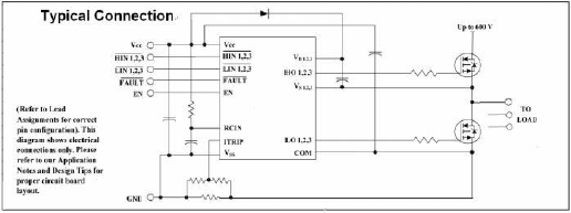 •主要特點(diǎn):浮動(dòng)通道設(shè)計(jì)用于自啟動(dòng)操作,完全工作到+ 600v,可承受負(fù)瞬態(tài)電壓,柵極驅(qū)動(dòng)供電范圍從10v到20v,所有通道欠壓鎖定,過(guò)流關(guān)斷關(guān)閉所有六個(gè)驅(qū)動(dòng)器,獨(dú)立的3個(gè)半橋驅(qū)動(dòng)器,所有通道匹配的傳播延遲,交叉?zhèn)鲗?dǎo)防止邏輯,低側(cè)輸出與輸入失相。3.3 V邏輯兼容,低電壓柵極驅(qū)動(dòng),抗噪性更好,外部可編程延遲,故障自動(dòng)清除,所有部件均無(wú)鉛