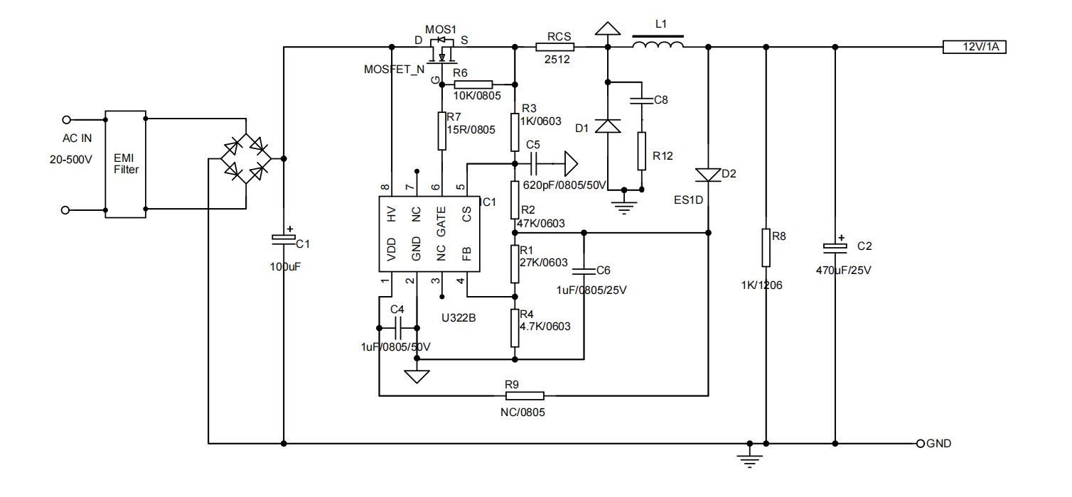 U322B是一款高性能低成本PWM控制功率器,適用于離線式小功率降壓型應用場合,外圍電路簡單、器件個數(shù)少。同時產(chǎn)品內(nèi)置高耐壓MOSFET可提高系統(tǒng)浪涌耐受能力。與傳統(tǒng)的PWM控制器不同,U322B內(nèi)部無固定時鐘驅(qū)動MOSFET,系統(tǒng)開關(guān)頻率隨負載變化可實現(xiàn)自動調(diào)節(jié)。同時芯片采用了多模式PWM控制技術(shù),有效簡化了外圍電路設計,提升線性調(diào)整率和負載調(diào)整率并消除系統(tǒng)工作中的可聞噪音。此外,芯片內(nèi)部峰值電流檢測閾值可跟隨實際負載情況自動調(diào)節(jié),可以有效降低空載情況下的待機功耗。U322B集成有完備的帶自恢復功能的保護功能:VDD欠壓保護、逐周期電流限制、輸出過壓保護、過熱保護、過載保護和VDD過壓保護等。